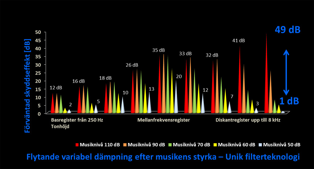 Unik filterteknologi – flytande variabel dämpning efter styrkan i musiken.